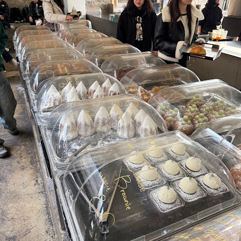 개점 후 두 시간 안에 도착했는데, 고른 페이스트리는 신선했고 커피와도 잘 어울렸습니다. 하지만 분위기는 제 마음에 들지 않았습니다. 카페에서 의도한 콘셉트는 알겠지만, 예상보다 낡고 관리가 안 된 느낌이었습니다. 우리가 앉았던 긴 테이블에는 마른 커피 얼룩이 여기저기 있었고, 벽은 더러워 보였으며, 몇몇 의자는 울퉁불퉁했고, 화장실도 꽤 지저분했습니다. 옥상에도 탁 트인 공간이 있었는데 좋아 보였지만 그날 너무 추워서 들어가지 못했습니다 (그리고 가파른 계단을 조심하세요). 전반적으로 음식과 서비스는 좋았지만, 분위기는 그다지 만족스럽지 못했습니다.