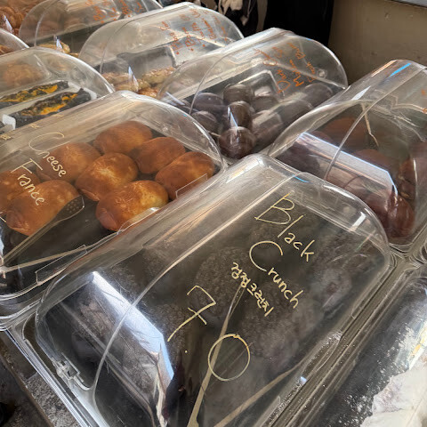 📍검은 빵은 겹겹이 쌓인 식감이 좋고, 많은 사람들이 선택하는 하얀 아이싱 빵은 정말 아이싱 맛이 나요.