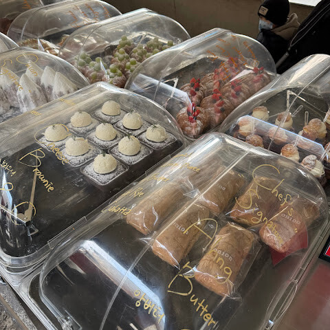 5가지 치즈빵(저희 중 한 명만 좋아했어요)과 크림치즈가 들어간 다크 초콜릿 브라우니는 좀 실망스러웠어요. 치즈 맛이 부족했고, 따뜻하게 나와서 치즈가 녹아내리고 향긋하게 느껴졌으면 더 좋았을 것 같아요. 브라우니는 예상보다 더 건조하고 딱딱했는데, 크림치즈와 잘 어울렸지만 집이나 다른 곳에서 쉽게 재현할 수 있는 맛이었습니다.