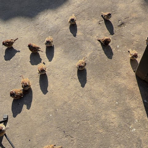 착석과 함께 참새가 엄청 모여 오고, 틈이 있으면 빵을 노려 옵니다.