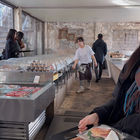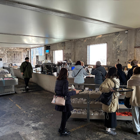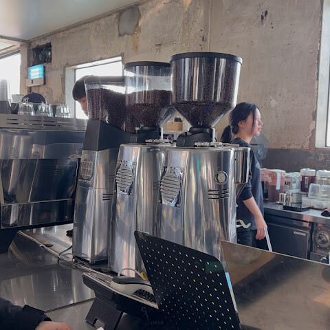 오래된 건물은 산업적인 분위기를 풍기는데, 특히 비 오는 겨울에는 더욱 황량하고 쓸쓸한 느낌을 줍니다! 문을 열자마자 손님들이 몰려들어 자리를 잡으려면 한참 기다려야 합니다. 테이블과 창가 하나하나가 그 자체로 풍경이라 사진 찍기에 완벽합니다! 음식도 아주 맛있고, 커피 원두와 기념품도 구입할 수 있습니다!