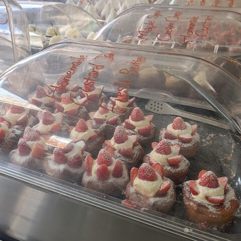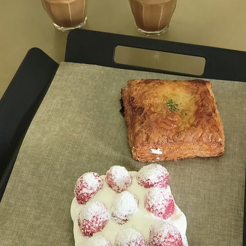 5가지 치즈빵(저희 중 한 명만 좋아했어요)과 크림치즈가 들어간 다크 초콜릿 브라우니는 좀 실망스러웠어요. 치즈 맛이 부족했고, 따뜻하게 나와서 치즈가 녹아내리고 향긋하게 느껴졌으면 더 좋았을 것 같아요. 브라우니는 예상보다 더 건조하고 딱딱했는데, 크림치즈와 잘 어울렸지만 집이나 다른 곳에서 쉽게 재현할 수 있는 맛이었습니다.