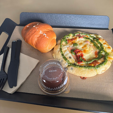 카페 어니언 강력 추천! 성수동에 오시면 꼭 한번 들러보세요! 🤍 빵 6개와 음료 3잔을 주문했는데, 빵 하나하나 정성스럽게 만들어졌고 속 재료도 푸짐하고 맛있었어요! 개인적으로는 짭짤한 빵이 달콤한 빵보다 더 맛있었지만, 달콤한 빵도 비주얼은 정말 훌륭했어요.