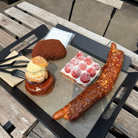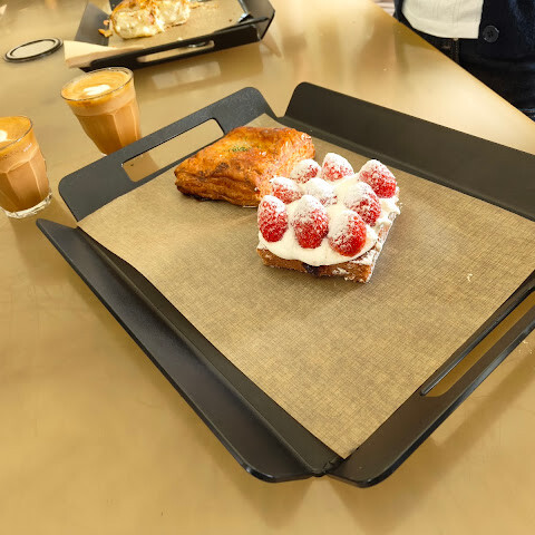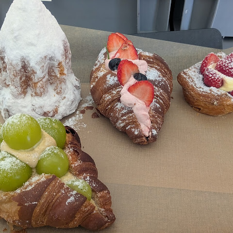 크루아상은 맛있었어요. 저는 포도맛 크루아상을 주문했는데, 개인적으로는 마음에 들었어요. 어머니께서는 오리지널 크루아상을 주문하셨는데, 정말 좋아하셔서 지금까지 먹어본 크루아상 중 최고라고 하셨어요. 음료는 바닐라빈 라떼와 딸기 밀크티를 주문했어요. 다른 분이 바닐라빈 라떼를 추천해 줬는데, 어머니께서 달다고 하셨어요. 단맛이 싫으시면 주문하지 마세요. 딸기 밀크티도 정말 달콤했어요! (저는) 2층과 1층이 나뉘어 있어서 자리는 쉽게 찾을 수 있었어요. 하지만 음식을 받기 전에 미리 자리를 예약하는 걸 추천해요. 계산 후 디저트와 빵에 대한 안내 표지판이 있어서, 계산이 끝날 때까지 기다렸다가 받아갈 수 있어요. 아주 편리하고, 1층에 휴대폰 충전할 수 있는 공간도 있어서 더 좋아요. 두 명이 총 27,000원이었어요. 참고하시라고요~