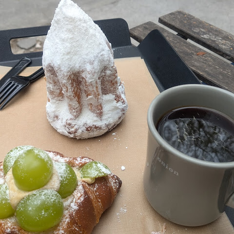 전 역시 MZ가 아닌가 봅니다. 빵이 맛있으면 커피가 별로고 커피가 맛있으면 빵이 별로인걸로 알고 있는데 여기는 둘다 제 타입이 아니네요. 빵은 몇가지 먹어봤는데 너무 딱딱해서 입안이 다 까졌어요. 커피는 이게 뭐지 싶어서 다시 마셔보니 가게 이름에 맞게 양파즙 맛이더라구요. 인더스트리얼 감성을 느끼며 사진찍기는 좋습니다.