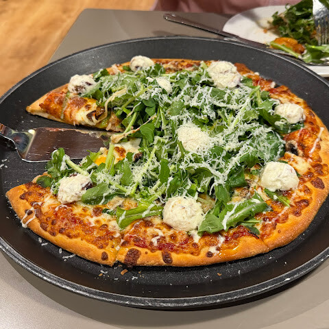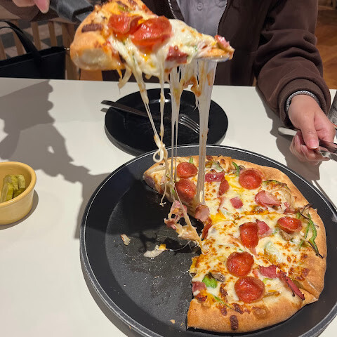 2025년 8월 8일 평일 오후에 방문했습니다.<br><br>대기 시간은 약 5분 정도였습니다. 안에는 좌석이 몇 개뿐이었습니다. 식사 환경과 분위기는 좋았습니다. 레스토랑은 넓고 좌석도 많지만, 인기가 많아 오후 비수기에는 거의 만석이었습니다.<br>음식은 맛있었습니다. 피자는 세 사람이 먹기에 충분히 크지 않았고, 사이드로 치즈와 소시지, 또는 하프앤하프를 선택할 수 있었습니다. 피자와 파스타는 치즈가 너무 많아서 시간이 지나면서 기름졌습니다.<br>추천: 고구마 피자 (사이드로 치즈와 핫도그를 반반씩).<br>주문 순서: 자리에 앉으세요 ➡︎ 태블릿으로 주문 및 결제 ➡︎ 웨이터가 식기를 가져다줍니다 ➡︎ 바에서 피클이나 음료를 제공합니다 ➡︎ 음식은 배달됩니다.<br><br>장점<br>✔️ 현금 및 신용카드 결제 가능<br>✔️ 공중화장실 이용 가능<br>✔️ 피클 제공 (셀프 서비스)<br><br>단점<br>✖️ 실내 소음이 심함
