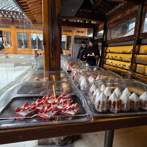 이곳의 가장 큰 특징은 한옥(전통 한국 가옥)입니다. 신발을 벗고 양반다리를 한 채 돗자리에 앉아 한국의 소박한 정취를 느껴볼 수 있습니다. 빵과 커피는 평범한 수준이며, 사진 촬영을 위해 방문할 만한 곳입니다.