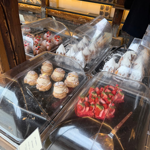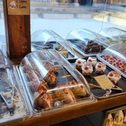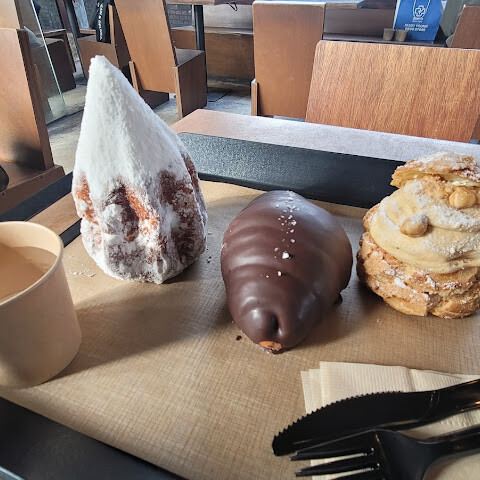페이스트리는 딱딱하고 눅눅했고, 차례를 기다리려면 줄을 서야 했고, 서비스는 정말 형편없었습니다. 분위기는 좋았지만, 전반적으로 카페가 그만한 가치가 없었습니다.