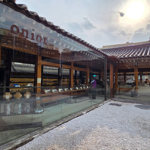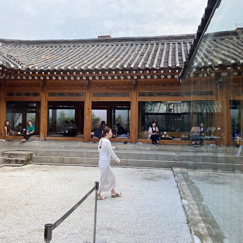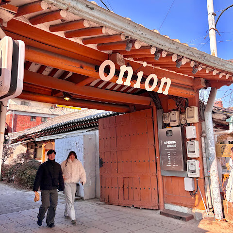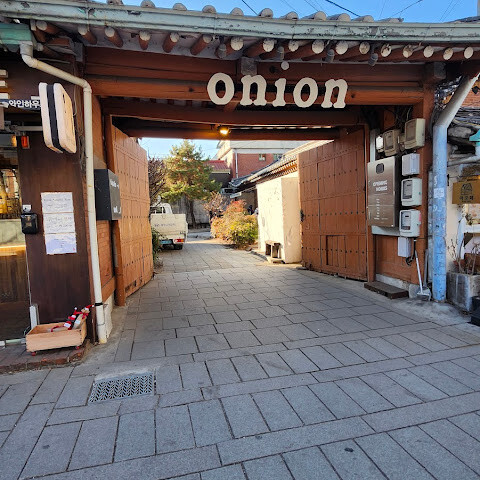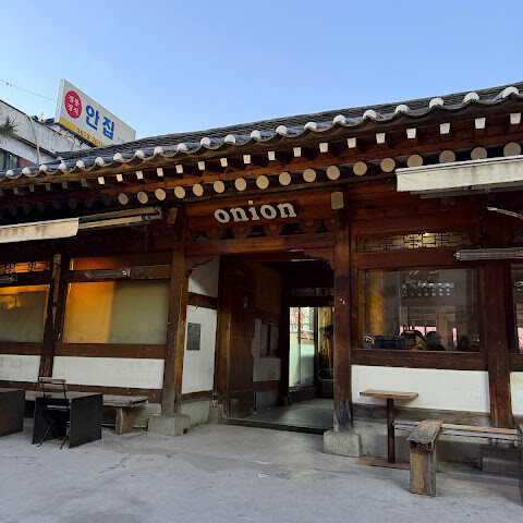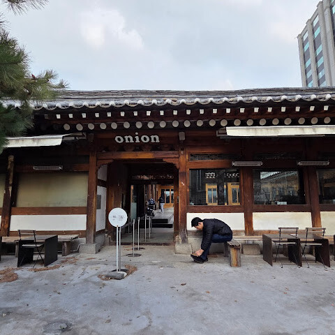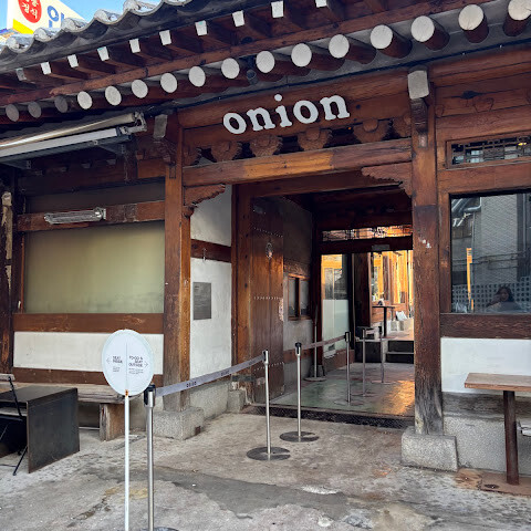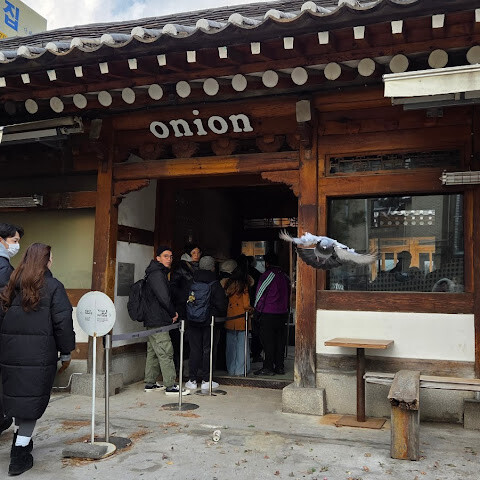 카페 어니언 안국은 관광객들에게 매우 인기 있는 카페로, 특히 피크 시간대에는 줄이 매우 깁니다.