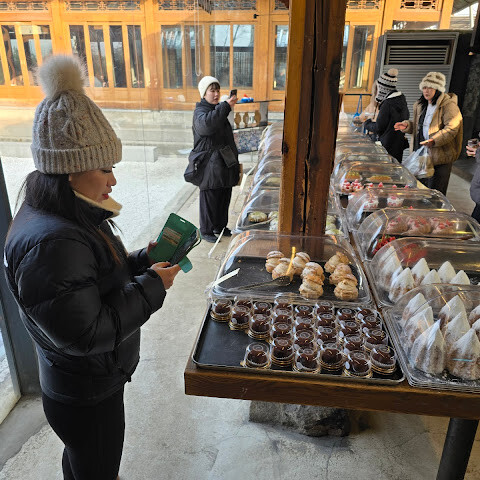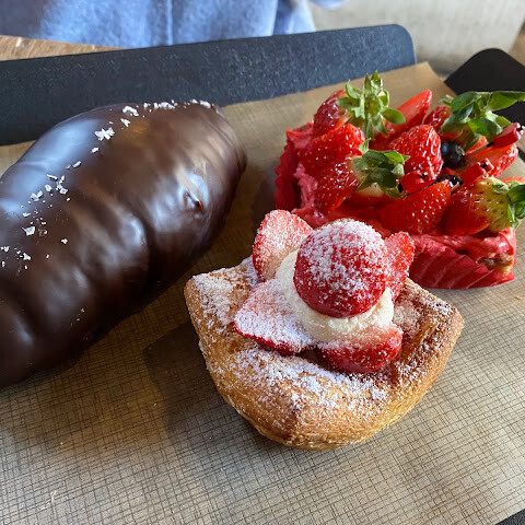 카페에 도착하면 돌아다니면서 주문하고, 어떤 빵이나 디저트가 있는지 구경할 수 있어요. 고르기가 너무 힘들었어요. 전부 다 너무 맛있어 보였거든요. 그리고 미리 말씀드리자면, 전부 다 정말 맛있었어요!