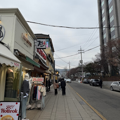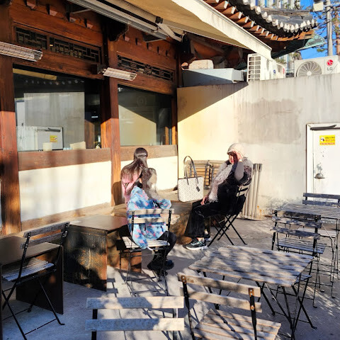 1월 5일 서울 북촌 한옥마을 여행을 마치고 이 인기 카페에 들렀습니다. 입구에 실내 좌석 줄이 이미 엄청나게 길어서 야외석에 앉기로 했습니다 (1월의 서울은 바람도 많이 불고 춥거든요!).