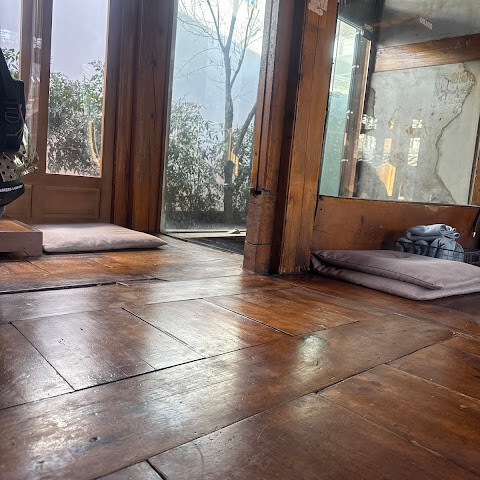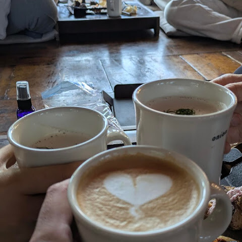 날씨가 추워서 히터를 켜놓고 바닥에 앉아 빵과 커피를 천천히 즐기면서 여유로운 시간을 보냈어요. 분위기를 만끽하고 잠시 쉬어가기에 딱 좋은 곳이에요!