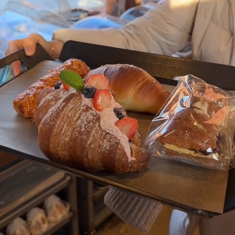 크루아상은 바삭했고, 스노우 마운틴 케이크는 부드럽고 향긋하면서 너무 달지도 않았어요!