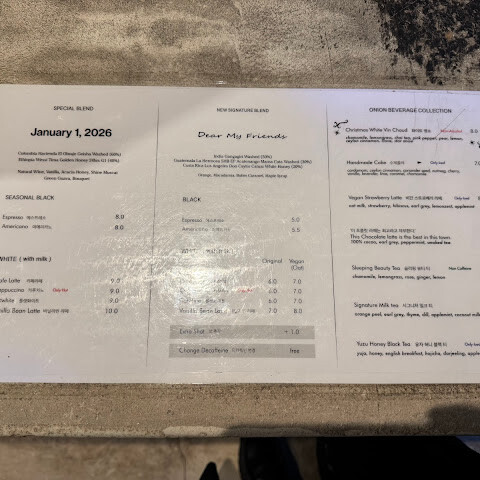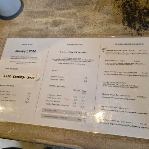 오랜만에 어니언 안국점에 방문했어요. 도착하는 대로 자리 찾아서 입장할 수 있었던 예전과 달리 입구에서 대기해야하는 불편함과 나의 최애템인 앙스콘이 메뉴에서 빠져서 너무너무 아쉬웠다는. ㅜ.ㅜ