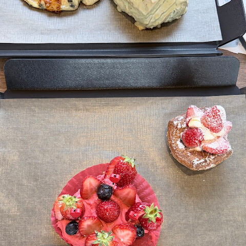 초콜릿으로 덮인 소금빵처럼 심플한 페이스트리가 가장 맛있습니다. 설탕이 뿌려진 대표 메뉴는 기대 이하였습니다. 전날 냉장고에 보관했던 것 같고 신선한 맛이 나지 않았어요. 피스타치오 크림 퍼프도 마찬가지였습니다.