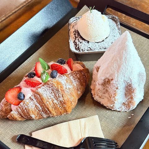 크루아상은 바삭했고, 스노우 마운틴 케이크는 부드럽고 향긋했는데, 너무 달지도 않았어요!