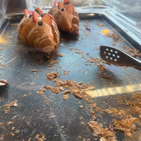 첫째 날에는 소시지 롤, 가지 피자, 소금 크루아상, 콩 샌드위치, 딸기 크림이 들어간 페이스트리를 골랐어요. 바닐라 라떼와 밀크티도 두 잔씩 시켰고요. 먼저 밀크티부터 얘기하자면, 저는 차나 커피를 즐겨 마시는 편은 아닌데, 여기 밀크티는 제가 마셔본 음료 중에 단연 최고였어요. 지금도 그 맛이 생각나서 언젠가 꼭 다시 가서 마시고 싶어요. 다른 빵이나 디저트들도 모두 맛있었어요. 모든 디저트를 정말 맛있게 먹었고, 쟁반에 부스러기 하나 남김없이 다 먹었어요.