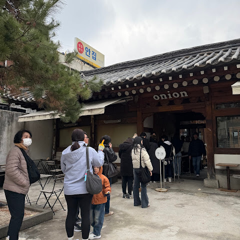 카페 어니언 앙국은 경복궁과 창덕궁 사이에 위치한 북촌 한옥마을에 있는 유명한 카페입니다. 아름답게 보존된 전통 한옥 안에 자리 잡고 있으며, 매력적인 안뜰이 있어 특별하고 사진 찍기에도 좋은 분위기를 자랑합니다.<br><br>다양한 종류의 페이스트리와 음료를 제공하며, 모든 메뉴는 보기 좋게 플레이팅되어 나옵니다. 하지만 넓은 좌석에도 불구하고 매우 혼잡한 편입니다. 긴 줄이 흔히 발생하며, 많은 사람들이 개점 시간 전부터 줄을 서기 시작합니다.<br><br>개인적으로는 오래 기다릴 만큼 가치가 있다고 생각하지는 않지만, 독특한 분위기와 전통 한옥 안에서 페이스트리와 음료를 즐길 수 있다는 점에서 한 번쯤 방문해 볼 만합니다.