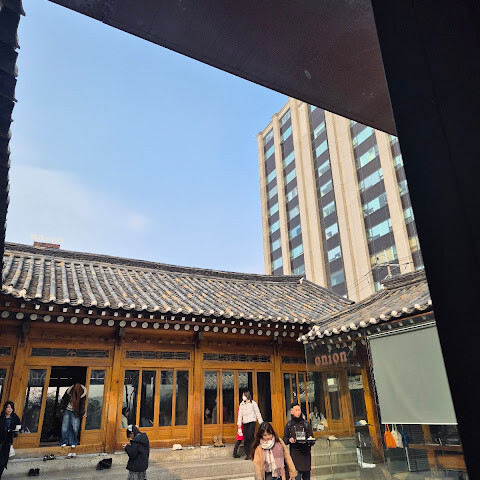 생일 기념으로 서울에 있는 양파카페 안국으로 나들이를 갔는데, 정말 눈이 즐거운 곳이었어요! 1920년대 조선 후기에 지어진 건물인데, 아름답게 보존되어 옛 정취가 물씬 풍겼어요. 유리 패널이 현대적인 감각을 더해주기도 했고요.