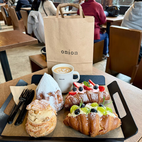카페 어니언은 명성에 걸맞은 곳입니다. 공간은 거친 산업 디자인과 따뜻하고 활기 넘치는 에너지가 멋지게 어우러져 있으며, 여러 개의 방으로 구성되어 단순한 카페를 넘어 하나의 특별한 경험을 선사합니다.<br><br>단연 돋보이는 메뉴는 판도로입니다. 거대한 크기에 슈가파우더가 듬뿍 뿌려져 있고, 놀랍도록 가볍고 폭신한 식감을 자랑합니다. 롱 블랙 커피에 찍어 먹으니 그 맛이 한층 더 업그레이드되어 제가 먹어본 판도로 중 최고였습니다.<br><br>페이스트리 종류도 전반적으로 훌륭하고 항상 신선한 재료를 사용하지만, 커피는 메인 메뉴라기보다는 곁들임 메뉴에 가깝습니다. 매우 붐빌 수 있으니 대기 시간이 있을 수 있지만, 분위기와 시그니처 페이스트리를 맛보기 위해 적어도 한 번은 방문할 가치가 충분합니다.