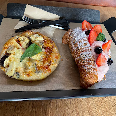 제가 먹은 모든 음식이 정말 맛있었어요!<br>초콜릿 코팅 소금빵과 가지 파이/피자를 먹었는데, 환상적이고 풍미가 가득했어요.<br>강력 추천합니다. 다른 페이스트리들도 다 맛있어 보여서 뭘 고를지 정말 고민했어요.