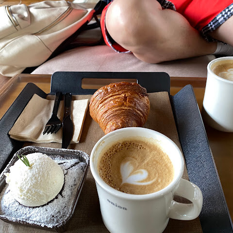 크로와상도 피스타치오 초콜릿에 걸친 크로와상도 맛있었습니다. 카페라떼의 맛은 커피를 좋아하는 것을 만족시키는 것이라고 생각합니다.