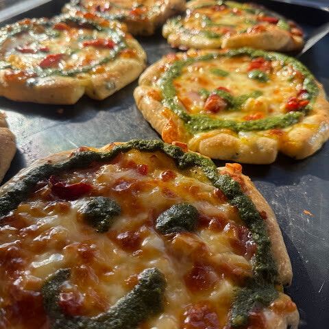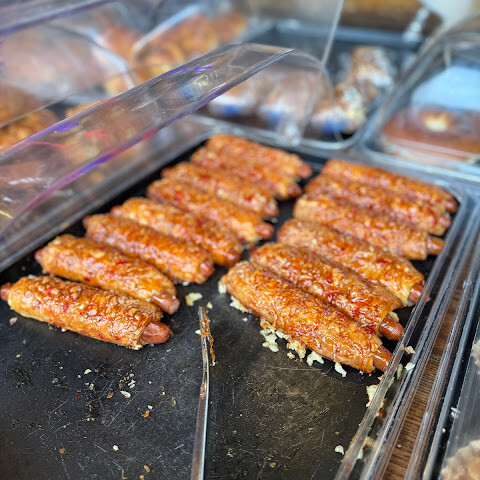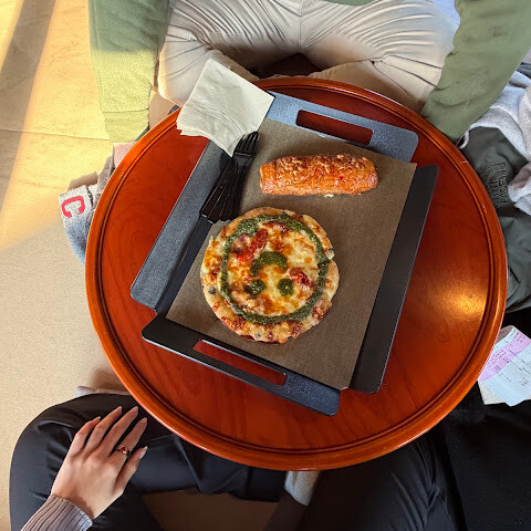 두 번째 방문 때는 당연히 밀크티를 다시 주문했죠. 페이스트리로는 소시지 링크, 페스토 피자, 마늘 크림치즈 빵, 그리고 시그니처 메뉴인 슈가파우더 케이크를 골랐어요. 제 최애는 마늘 크림치즈 빵이었지만, 모든 페이스트리를 남김없이 맛있게 먹었어요.