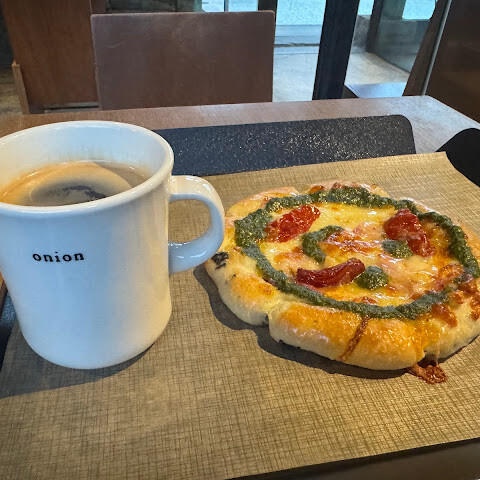 근처에 있다면 꼭 한번 방문할 만한 곳이에요. 카페는 넓고 쾌적합니다. 바닥에 앉아서 음식을 직접 가져다 먹는 방식인데, 뷔페처럼 원하는 음식을 고르고 계산한 후 자리로 돌아가면 돼요. 식사보다는 커피와 간단한 간식을 즐기기에 좋은 곳이라고 생각합니다. 양파와 크림치즈를 얹은 베이글이 정말 맛있었어요.