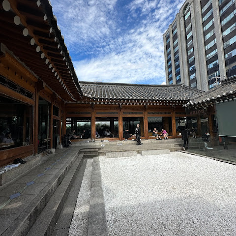 특히 한옥점은 미닫이문, 나무 들보, 그리고 하늘을 담은 탁 트인 안뜰 등 한국 전통 건축의 매력을 잘 보여줍니다.