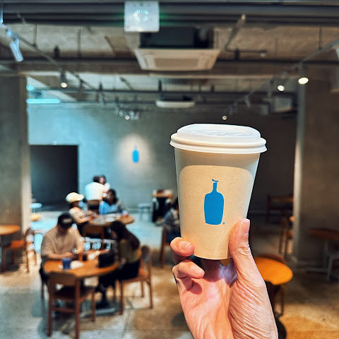 아주 특별한 블루보틀 커피, 컵에 파란색 하트가 있어서 다른 곳과 다릅니다 💙💙💙