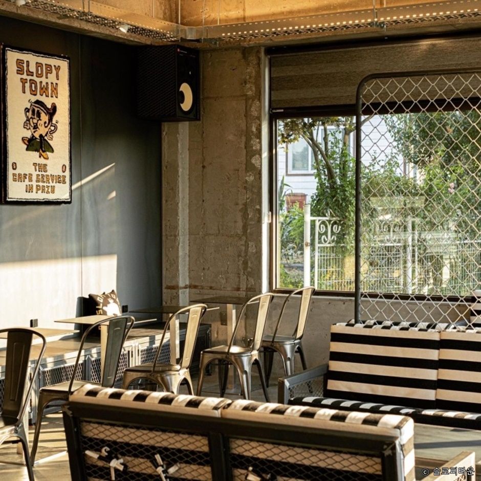 경기도 파주시 탄현면에 있는 바이크 카페다. 실내에 바이크가 있고, 바이크족이 많이 찾는 곳이다. 힙한 미국 감성을 느끼고 싶을 때 방문하면 좋은 곳이다. 파주의 한문 용례(坡: 언덕 파, 州:고을 주)를 영문 용례(Slopy: 언덕, Town: 고을)로 풀이하여 탄생한 카페명이다. 크로플, 스콘 등 디저트도 취향대로 주문 가능하며, 라테와 티 등 음료도 종류별로 마련되어 있다. 주차장이 넓어서 초보운전자도 쉽게 주차할 수 있다. 감성 있는 인테리어에 배경음악이 신나고 펑키한 분위기로 일상에서 벗어나고 싶을 때 방문하면 좋다.