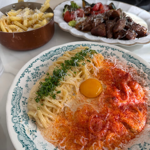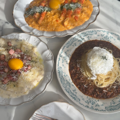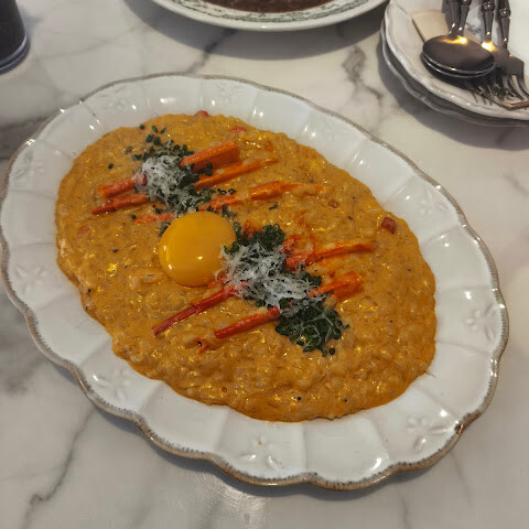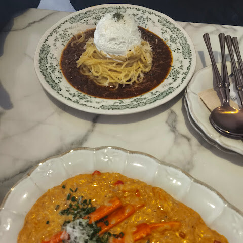 브런치 먹기 좋은 곳이에요, 음식 정말 맛있었어요! 12시에 갔는데 줄이 좀 있었지만 생각보다 빨리 줄어들었어요. 크랩 리조또랑 로제 파스타를 시켰는데 둘 다 훌륭했어요.