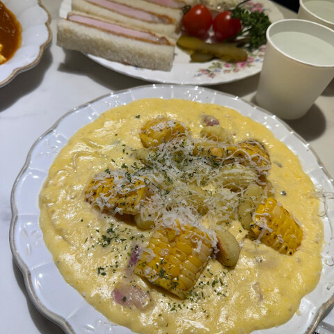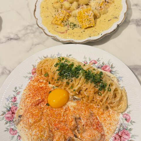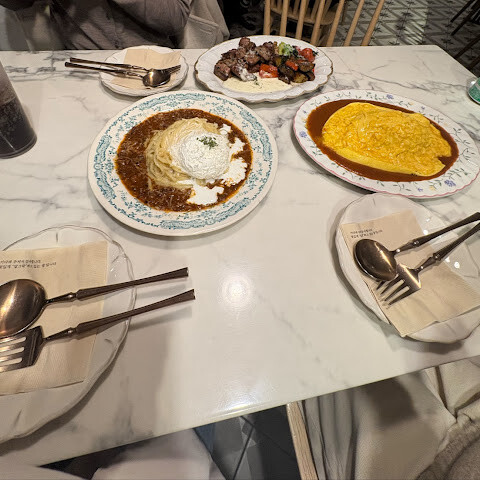 크림 파스타를 주문했습니다. 굉장히 맛있었습니다. 오므라이스 1구 받았습니다만 이쪽도 굉장히 맛있었습니다.