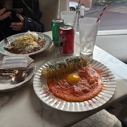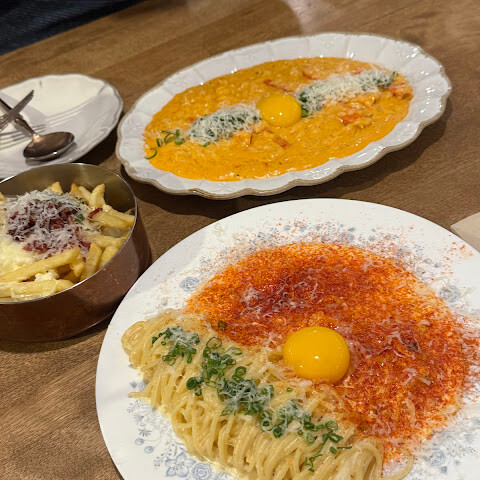 크림을 좋아하는 사람이라면 분명 좋아할 만한 곳이에요. 개인적으로는 까르보나라가 제일 맛있었는데, 메인 메뉴들이 전반적으로 단맛이 강한 편이니 참고하세요. 서비스도 좋고, 매장도 꽤 넓었어요.
