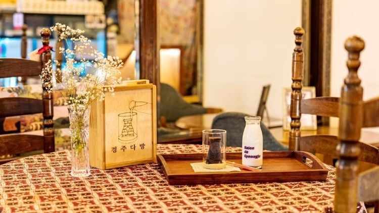 경주다방은 경상북도 경주시 황오동에 있다. TV프로그램에 소개된 디저트 카페로 빈티지한 소품들로 8~90년대 분위기를 연출했다. 대표 메뉴는 첨성대 모양의 아이스 큐브와 달콤한 연유가 어우러진 첨성대 라테와 인절미 와플이고 진한 유자청의 맛이 느껴지는 유자에이드, 부드러운 크림을 얹은 크림말차라테 등도 있다.
