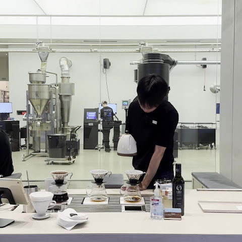 처음 봤을 때 바닷가 창고 지역에 이렇게 큰 커피숍이 있을 거라고는 생각지 못했습니다. 커피숍 외에도, 커피숍 뒤편에는 실제 원두 창고와 생산 라인이 있습니다. 그날 새벽 2시가 넘어서 도착해서 잠이 안 올까 봐 콜롬비아 아폰테 디카페인 라떼를 주문했습니다. 진한 로스팅 향이 나는데 한 잔에 6,500엔밖에 안 하더군요!
