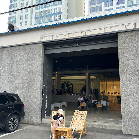 모모스 커피 두 번째 지점! 한국에 이렇게 멋진 곳이 있는 줄은 몰랐어요. 멋진 로스팅 기계, 신나는 음악, 그리고 영도 특유의 아름다운 바다 풍경까지, 이보다 더 좋을 순 없을 거예요.