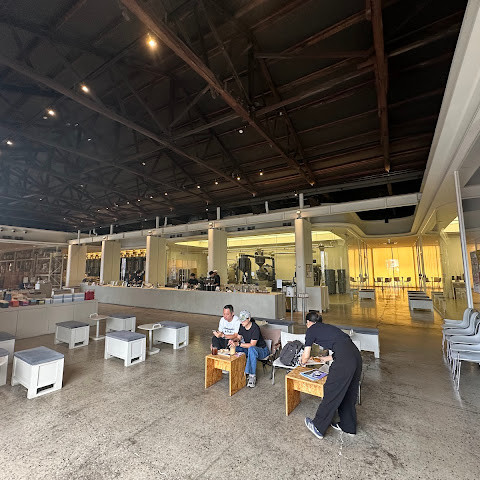 전체적인 분위기는 마치 커피 공장에서 커피를 마시는 것 같아요. 카페처럼 편안한 분위기는 아니지만, 직접 내린 커피는 정말 맛있어요.