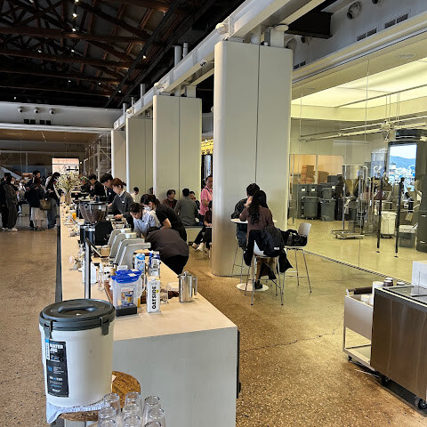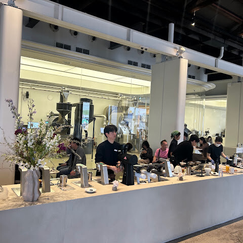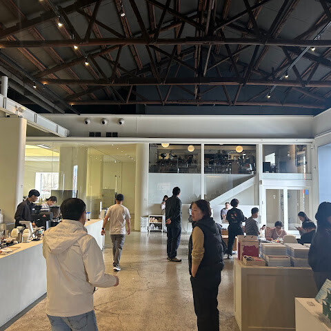 이 오프라인 매장은 원두 보관, 로스팅, 포장 과정을 모두 볼 수 있는 곳이에요. 매장이 꽤 넓어서 바리스타들이 긴 바에서 커피를 만드는 모습도 볼 수 있었습니다. 마치 쇼룸과 로스터리가 합쳐진 느낌이었어요. 커피도 맛있었고 바리스타분들도 친절하셔서 정말 좋았습니다.