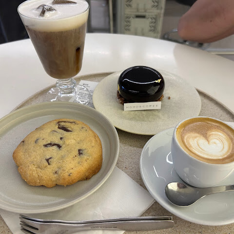 모모스 카게시마 지점에서는 설탕에 절인 오렌지 껍질 페이스트리를 곁들인 에스프레소를 강력 추천합니다. 정말 맛있고 조화로운 조합이에요! 다만, 에스프레소에 오렌지 시럽이 들어가 있어서 마지막에는 조금 달게 느껴졌습니다. 핸드드립 에스프레소는 언제나처럼 품질이 좋고 풍미가 풍부하지만, 에스프레소를 다 마시고 나면 시럽 맛이 살짝 묻히는 느낌이었어요. 그래도 전반적으로는 충분히 추천할 만한 곳입니다.