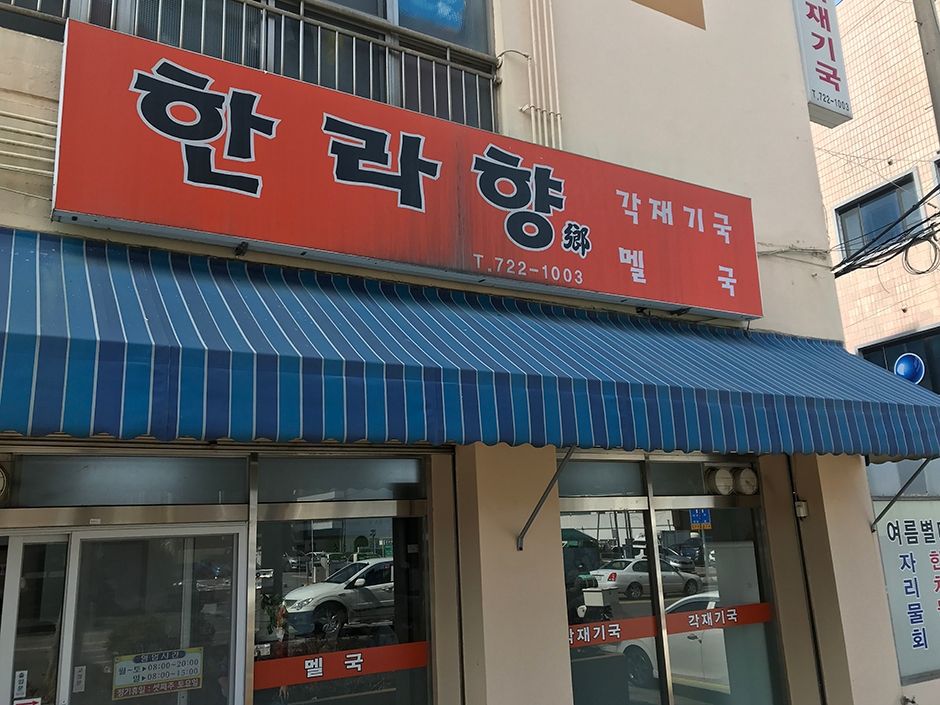 제주어 각재기는 ‘전갱이’를 뜻한다. 한라향은 배추를 넣어 시원한 국물에 각재기 한 마리가 들어간 각재기국을 판매하는 한식당이다. 이외에도 멜국과 멜조림, 고등어 구이 등 제주 로컬 음식 메뉴가 있다.