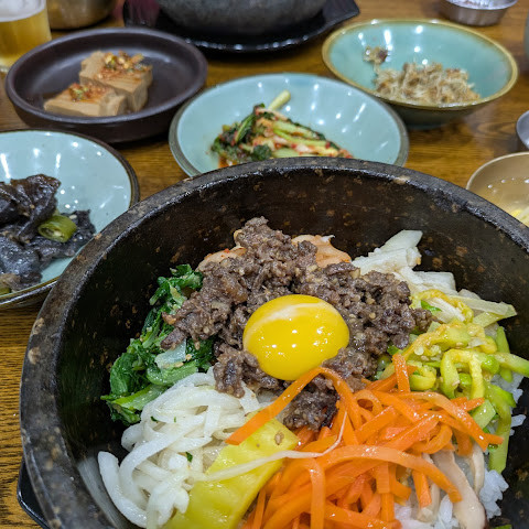 육회비빔밥 먹기 좋았습니다. 돌솥비빔밥도 괜찮고 해물파전 맛있습니다.