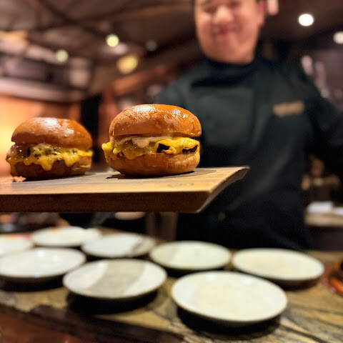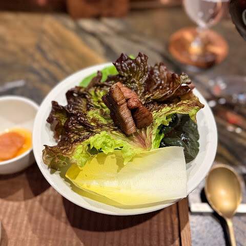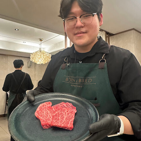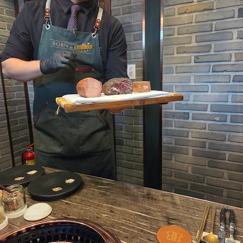 소고기가 더 이상 맛있어질 수 없다고 생각하는 순간, Born and Bred에 도착하면 소고기의 즐거움을 완전히 새로운 차원으로 끌어올리게 됩니다. K팝 아이돌 같은 젊은 외모의 준 셰프는 숯불 그릴과 프라이팬을 능숙하게 다루며 소고기의 풍미를 극대화하는 솜씨를 보여줍니다. 편안한 분위기 속에서 제공되는 모듬 소고기는 하나하나의 맛을 훌륭하게 살려줍니다.