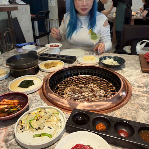 서울에서 정말 멋진 경험이었어요! 캐주얼 다이닝이었지만 분위기는 고급스러웠어요 (그러니까 트레이닝복은 안 입으세요, 그런 캐주얼한 분위기는 아니거든요). 음식 퀄리티가 훌륭했어요. 고기 종류별로 곁들여 나오는 다양한 사이드 메뉴도 정말 좋았어요. 고기는 숯불에 직접 구워 나오더라고요. 양도 푸짐하고 맛있어서 식사 후 배가 엄청 불렀어요. 사이드 메뉴도 훌륭해서 여러 접시나 시켜 먹었어요. 정말 만족스러운 경험이었어요!