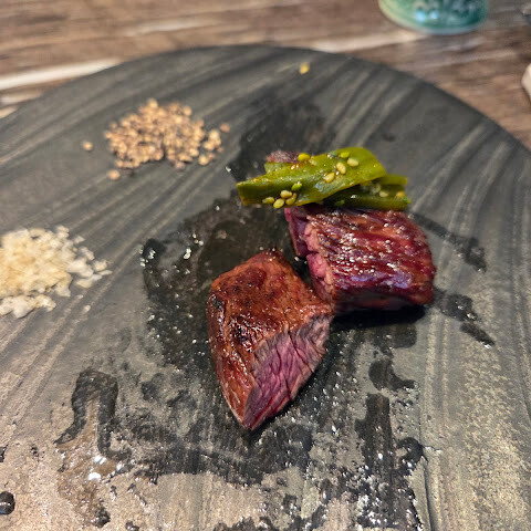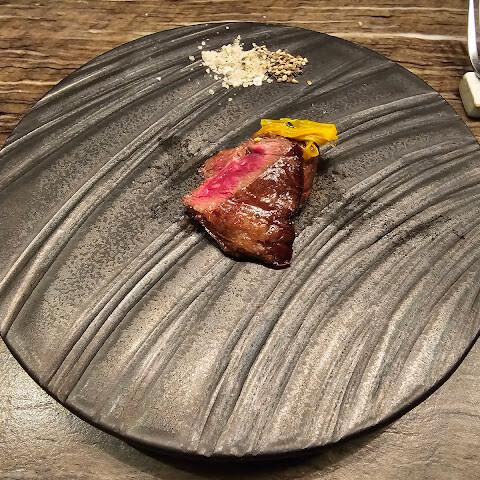쇠고기 애호가들... 이 곳은 당신에게 꼭 필요한 곳입니다. 이것은 쇠고기 오마카세와 한국식 바베큐와 비슷하지만 고급 식사 스타일입니다. 이곳에서는 한우 쇠고기를 제공합니다. 우리는 미리 예약을 해서 개인 식당에서 제공되는 15코스 식사를 선택했습니다.