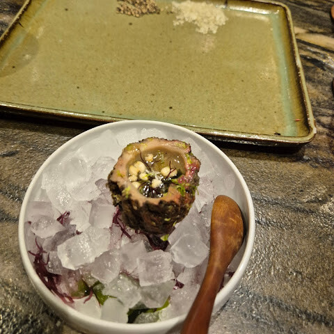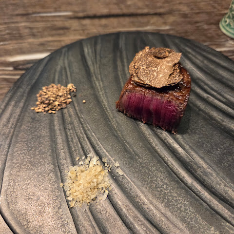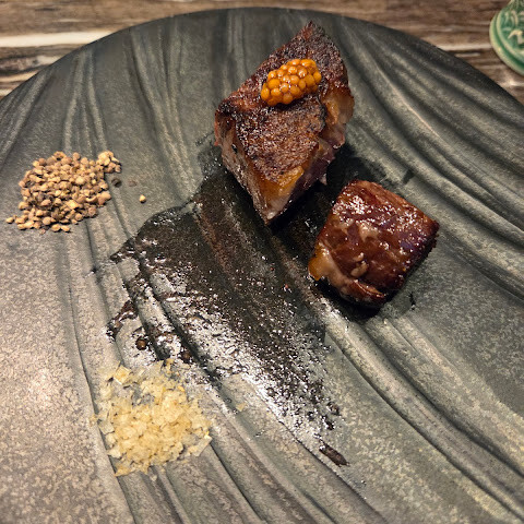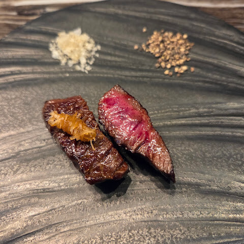 20가지 코스로 구성된 한우 소고기 오마카세는 다소 강렬하게 들릴 수 있지만, 그 균형은 아름답습니다. 풍부하고 버터 향이 풍부한 프리미엄 한우 부위들 사이에 망고와 바다 파인애플처럼 입맛을 돋우는 세심한 재료들이 포함되어 있어 입안을 개운하게 해 줍니다.