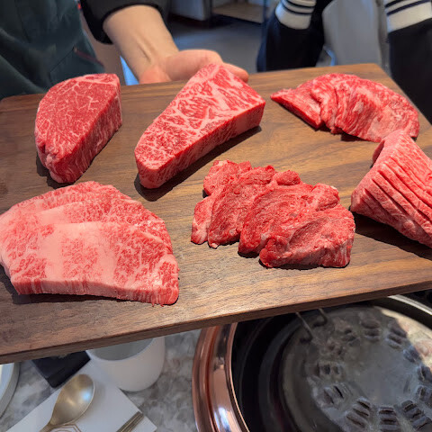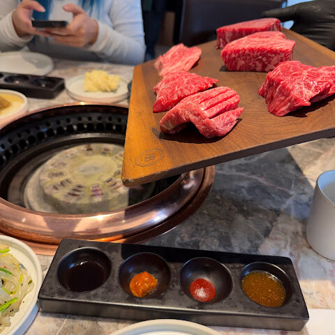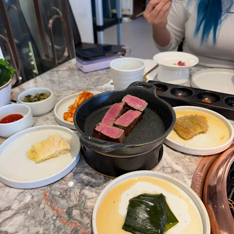 정말 환상적인 식사였어요! 손 씨라는 분이 저희를 담당해 주셨는데, 소고기 시식을 아주 능숙하게 안내해 주셨어요. 손 씨는 정말 친절하고 박식하셨습니다. 고기 부위도 미국에서 먹는 것보다 훨씬 좋았어요. 추가로 버거와 매운 국수도 주문했는데, 양이 너무 많았던 건지는 모르겠네요. 어쨌든 정말 맛있었습니다. 부담 없이 맛있고 접근하기 쉬운 고급 식사를 원하시는 분들께 강력 추천합니다.