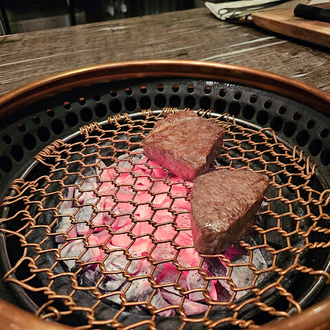 이곳에 대한 평가가 엇갈리는 건 알지만, 저희는 6명이서 저녁 식사를 하러 와서 단품 메뉴를 주문했는데 정말 즐거운 시간을 보냈습니다. 고기 부위도 맛있었고, 모든 요리를 완벽하게 조리해서 제공해 주기 때문에 직접 요리할 필요가 없다는 점이 마음에 들었습니다. 가격은 한국 기준으로는 비싼 편이지만, 제 생각에는 그만한 가치가 있다고 생각합니다. 오마카세 메뉴를 먹으러 다시 방문하고 싶어요!