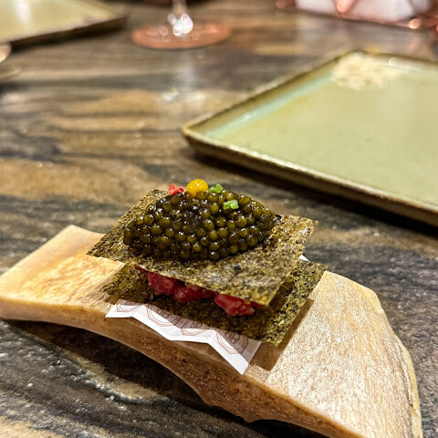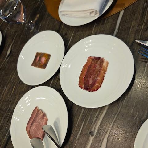 이 경험은 10점 만점에 10점이었습니다. 정말 즐거운 시간을 보냈습니다. 몇 분 일찍 도착하면 정육점에서 플래터를 준비하는 모습을 볼 수 있는 멋진 대기실이 있습니다. 직원들은 매우 친절했습니다. 저희는 스피크이지에서 여러 세트 코스를 주문했는데, 음식이 정말 훌륭했습니다. 음식의 흐름이 좋았고, 각 접시마다 정성껏 준비된 음식들이었습니다. 코스 중간에 나오는 캄부차 한 잔과 맛있는 유자 부테가 제때 도착해서 맛있는 소고기 코스를 깔끔하게 잘라주었습니다. 처음부터 끝까지 정말 멋진 경험이었습니다. 저희가 가장 좋아하는 음식 사진도 몇 장 첨부했습니다. 배고프게 오시면 절대 실망하지 않으실 겁니다.