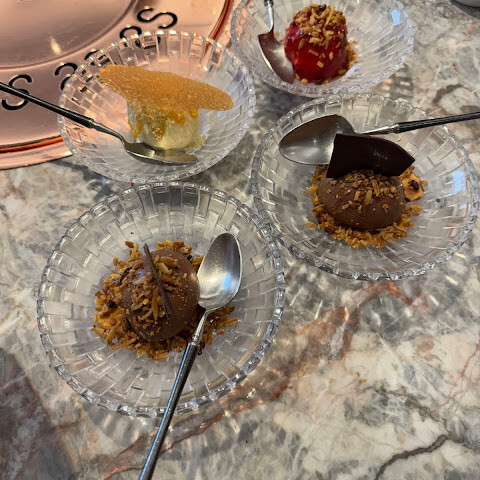 스피크이지(Speakeasy) 구역에서 오마카세 시식을 했습니다. 분위기는 밋밋했습니다. 음식은 처음에는 강렬했고 한우 구이 코스는 훌륭했습니다. 하지만 마지막 몇 코스는 솔직히 주제와 어긋나고 단조로웠으며, 정보가 부족했습니다(예를 들어, 다소 뜬금없는 베트남 쌀국수가 나왔습니다). 디저트는 메뉴에서 가장 실망스러웠는데, 식사 마지막에 형식적으로 작은 요리 하나만 추가되었을 뿐입니다.
